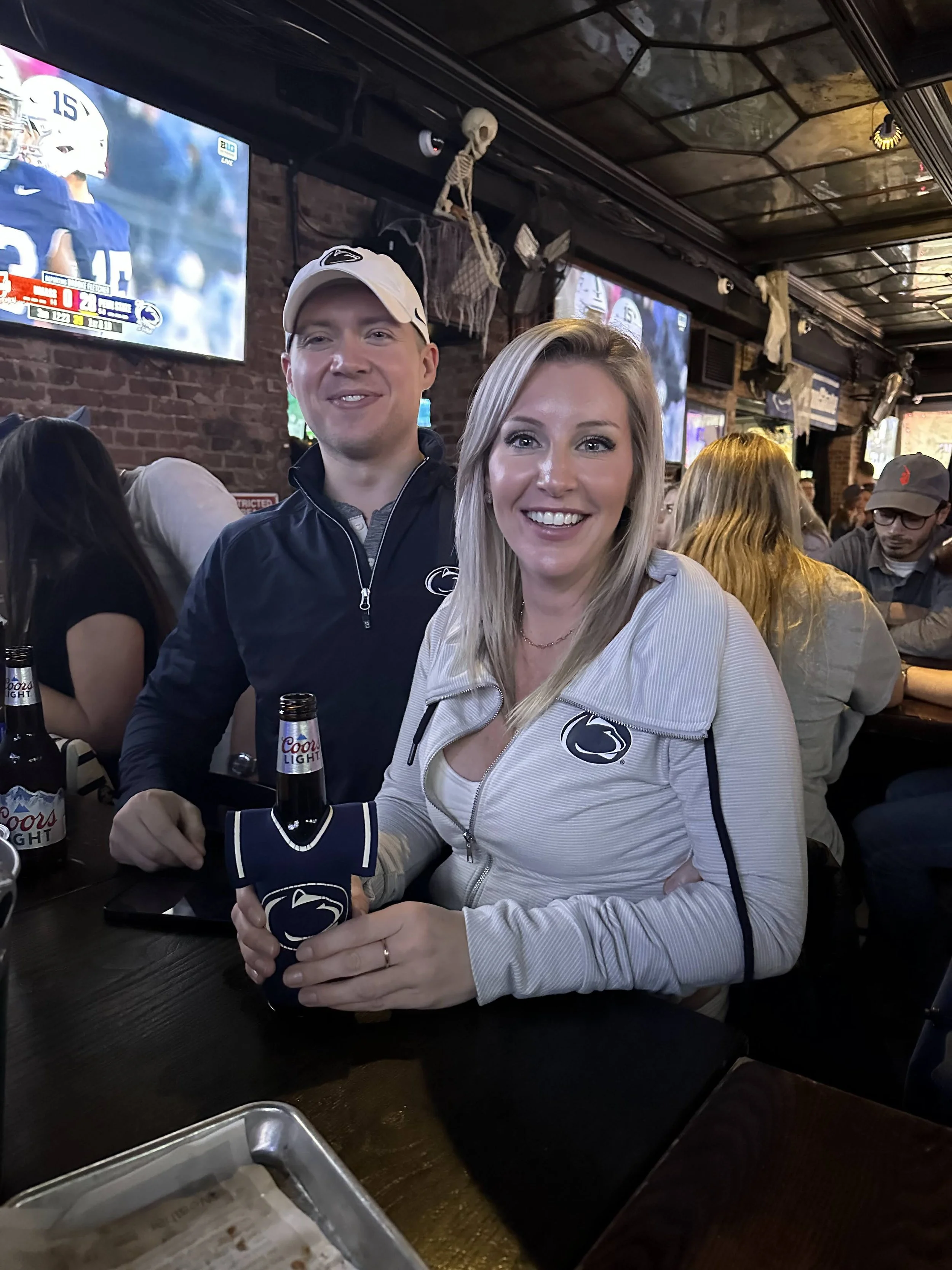 Amanda’s work schedule postponed their second date, but a few weeks later they met to watch their alma mater, Penn State, play football. Over beers, wings, and a nittany lion win, their connection grew and the lunch date stretched into dinner. the two have been inseparable ever since.